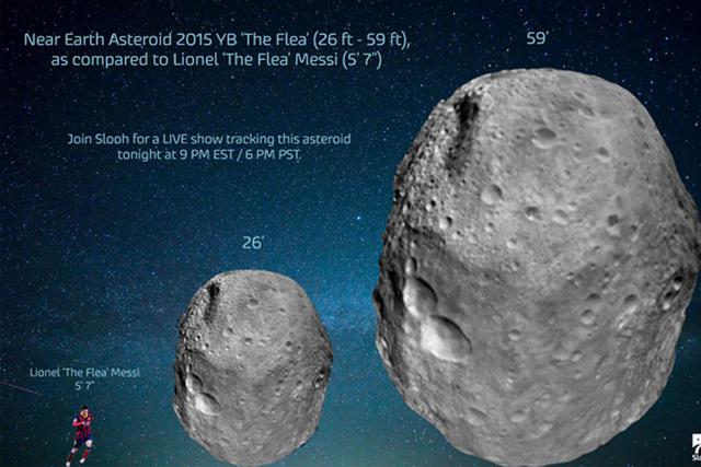 腾讯太空讯 据国外媒体报道,公交车大小的近地天体2015 YB在12月19日从地球附近掠过,这个小行星直径为10米,接近34英尺,近地点高度为9.5万公里。月球与地球之间的平均距离为38万公里,同步卫星的轨道高度为3.5万公里,因此9.5万公里是非常近的一个距离。近地天体2015 YB绰号为跳蚤,速度为每小时5.2万公里,美国宇航局近地天体跟踪机构对其进行了观测。