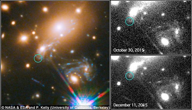 自2015年10月以来,哈勃望远镜跟踪分析了MACS J1149.5+2223星系团,希望拍摄到超新星,12月11日,最终成功拍摄到超新星爆炸。(悠悠/编译)