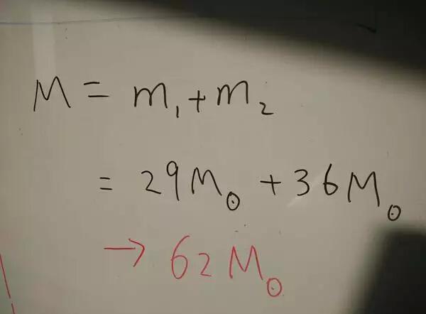 那么,问题来了,LIGO发现的事情是什么?那是两个黑洞碰撞并合:一个29倍太阳质量的黑洞与另外一个36倍太阳质量的黑洞,变成了一个质量为62倍太阳质量的黑洞,这事情与面积不减定理是违背的吗?